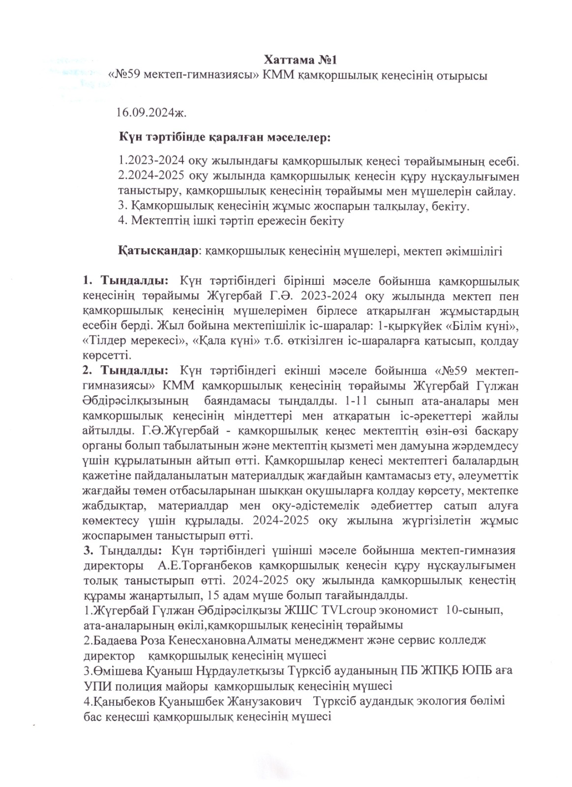 » Қамқоршылық кеңесінің №1 хаттамасы