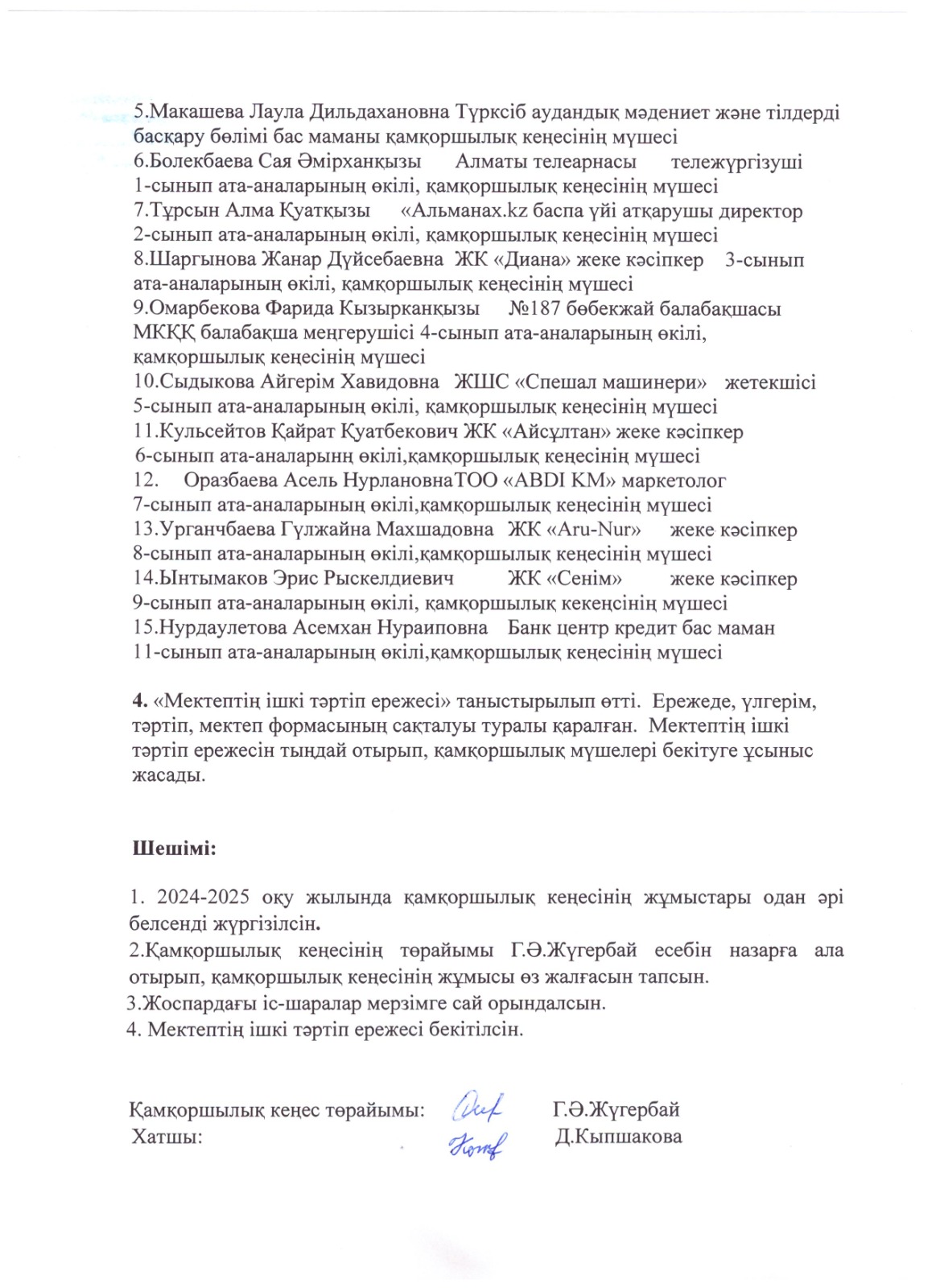 Қамқоршылық кеңесінің №4 хаттамасы.