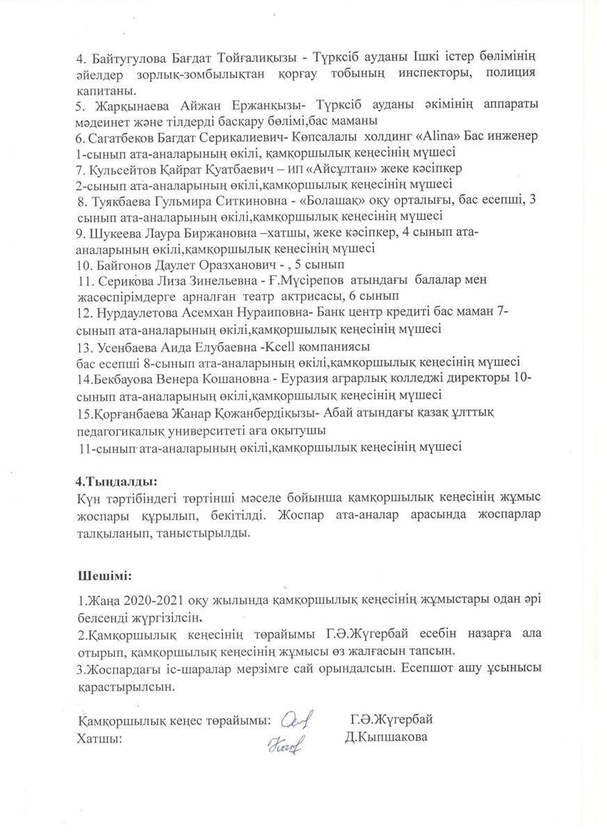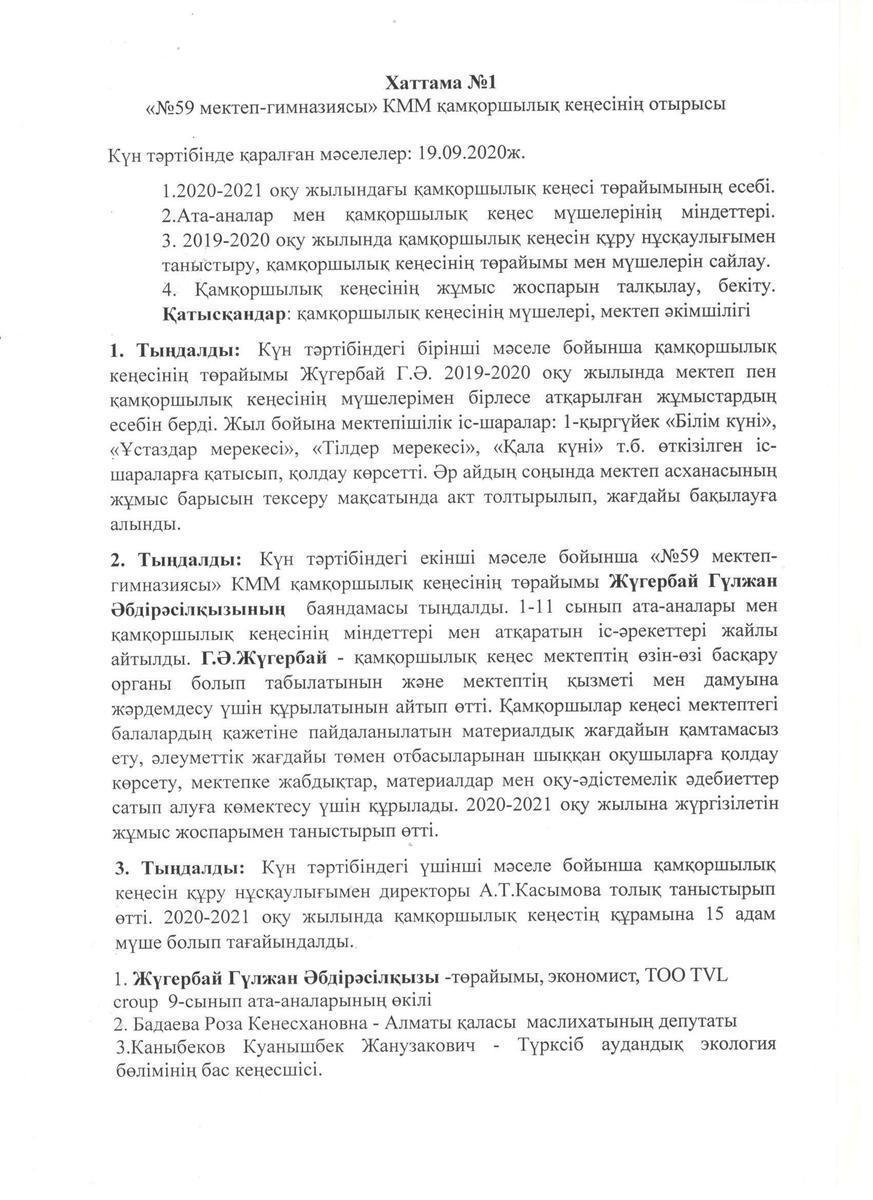 » №59 мектеп-гимназиясы КММ қамқоршылық кеңесінің отырысы