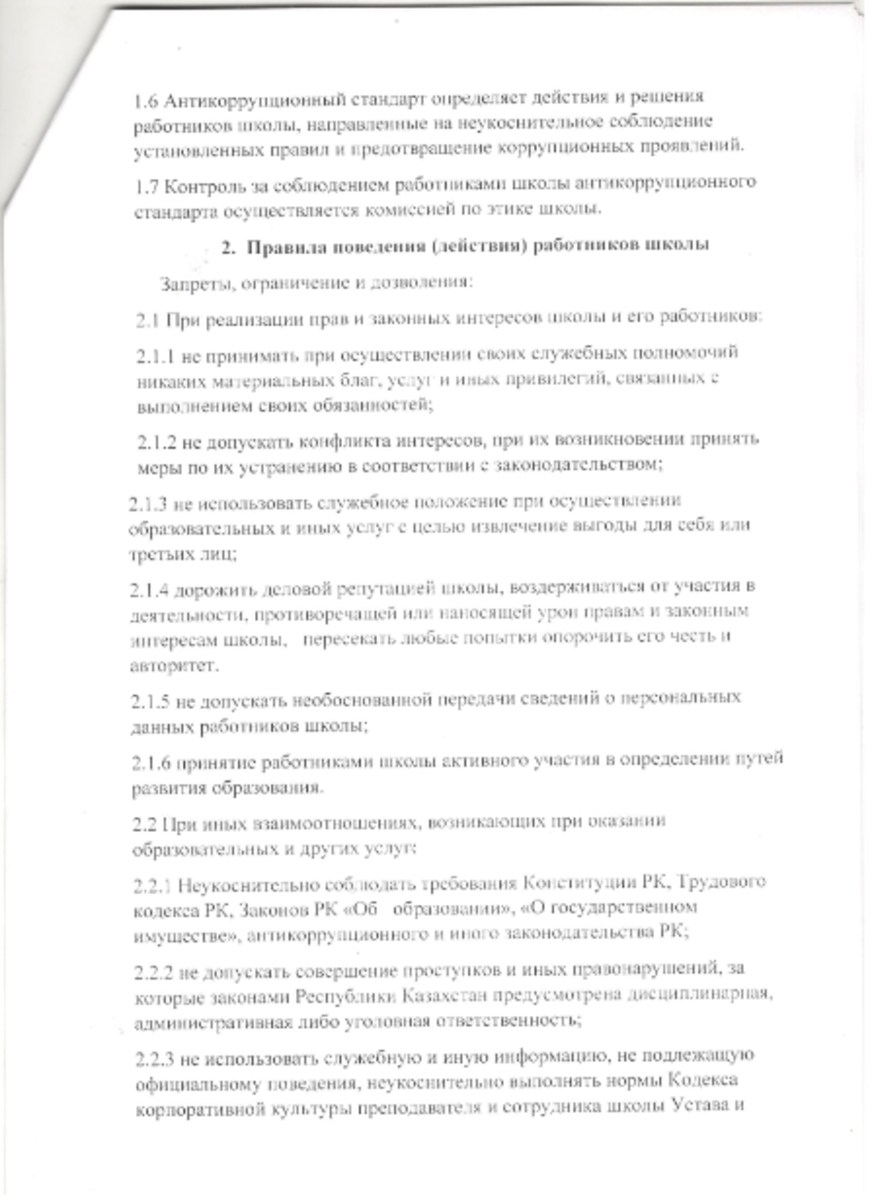 Антикоррупционный стандарт КГУ ШГ №59