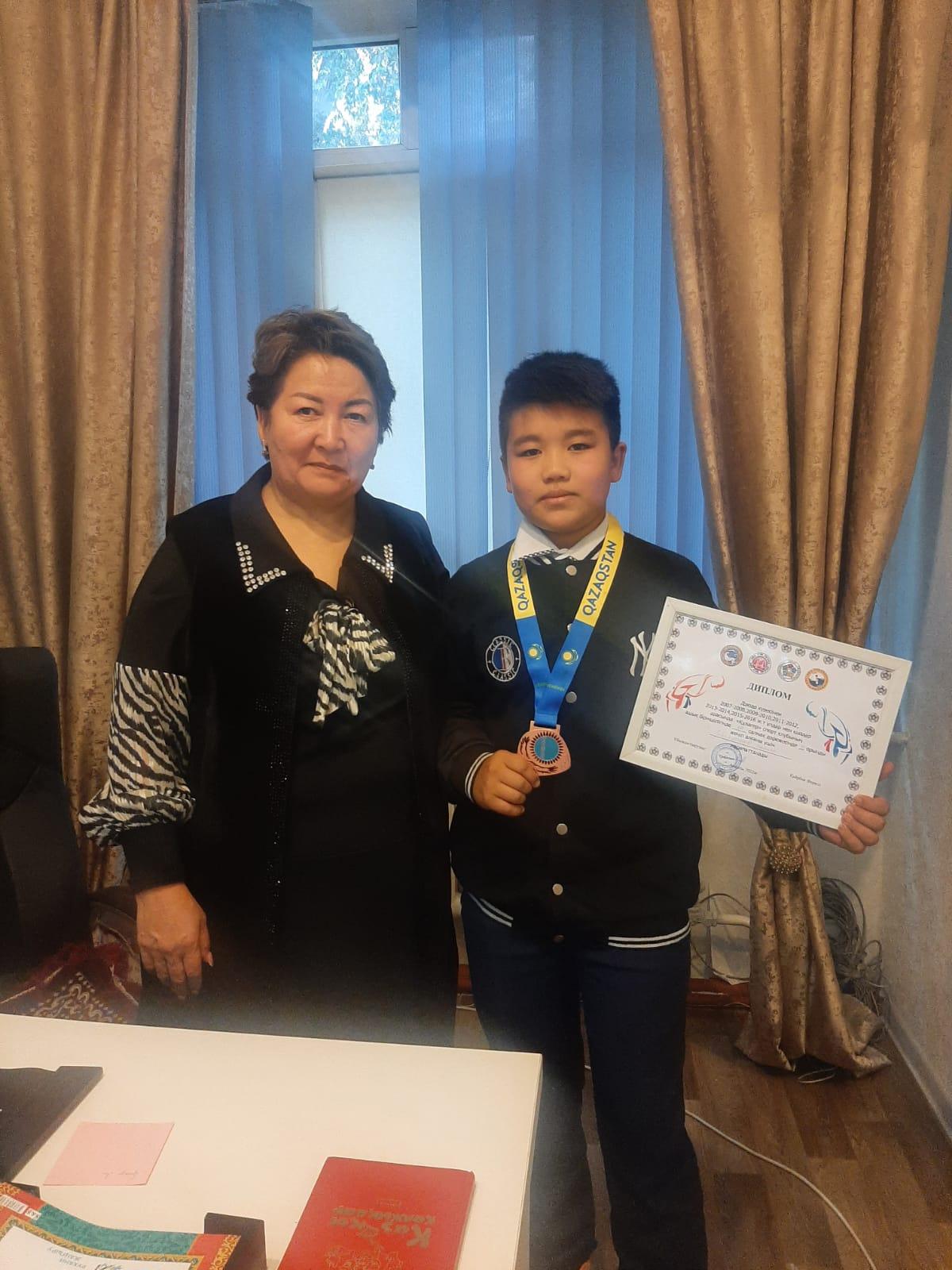 Осы аптада №59 мектеп-гимназиясының 6 «Ә» сынып оқушысы Сабырханов Байкен Республика күніне орай ұйымдастырылған ұлдар мен қыздар арасындағы «Құлагер» спорт клубының ашық біріншілігінде 50 кг салмақ дәрежесінде бақ сынасып, ІІІ орынды жеңіп алды. Жарайсың дейміз. Оқу-білімде ғана емес, спорт бағытында да үлкен нәтижеге жетіп, үздік атанып жатқан балаларымыз негізінде көптеп саналады. Міне, бұл жолы біздің Байкен деген оқушымыз өзінің күш-жігерімен, өнерімен үздік болып, диплом мен медальға ие болды. Сөйтіп мұғалімдері мен ата-анасын қуантып, мерейлерін бір асырды. Жетістігі көп болсын деп біз де өз тарапымыздан тілектестік білдіреміз. Сынып жетекшісі: Алибекова Ләйлім Гамалқызы.