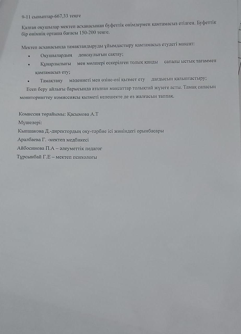 30 ноябрь 2021 0 1 2 3 4 5 Тамақтандыру сапасын бақылау комиссиясының 2021-2022 оқу жылының қараша айындағы бақылау есебі