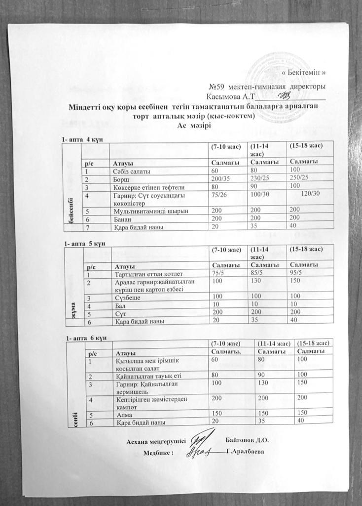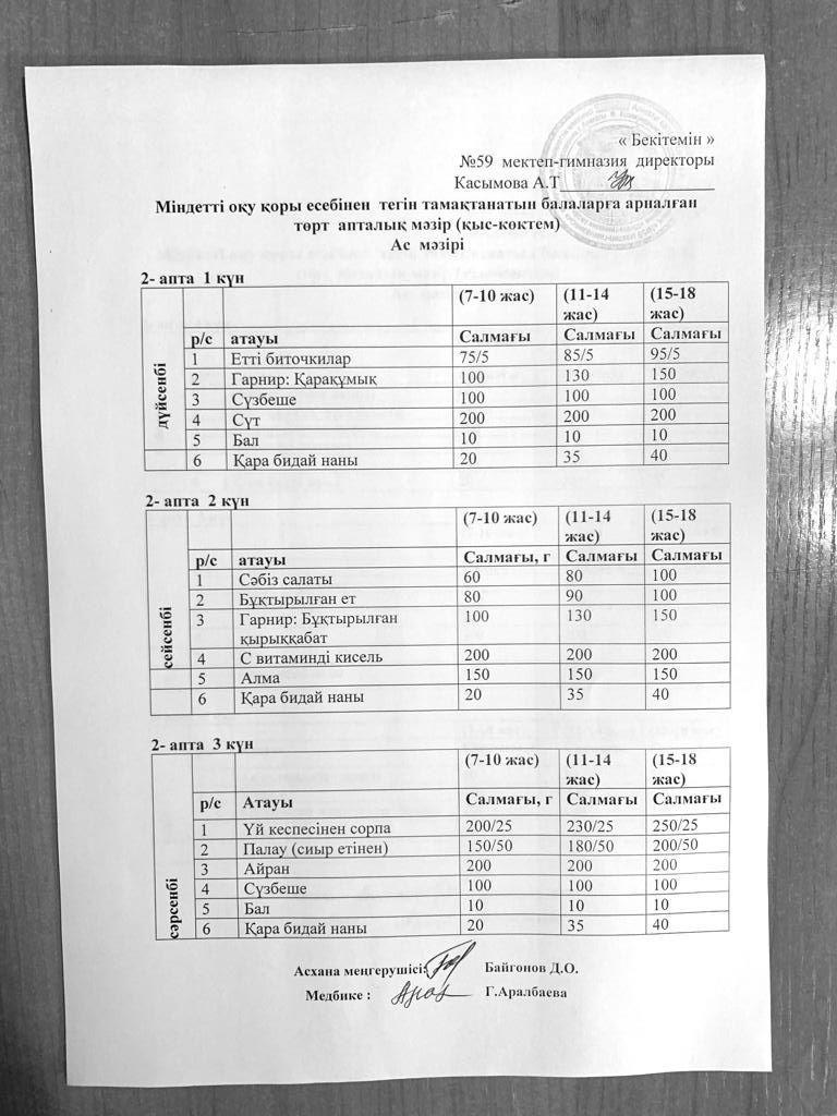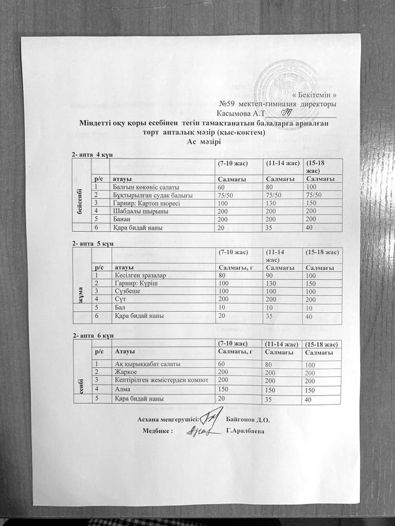 17 январь 2022 0 1 2 3 4 5 Міндетті оқу қоры есебінен тегін тамақтандыратын балаларға арналған төрт апталық мәзір (қыс- көктем)
