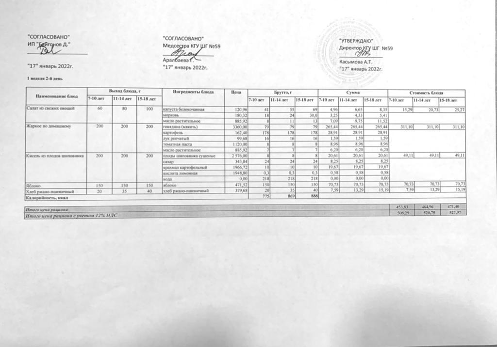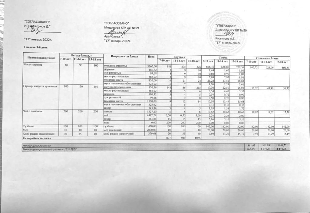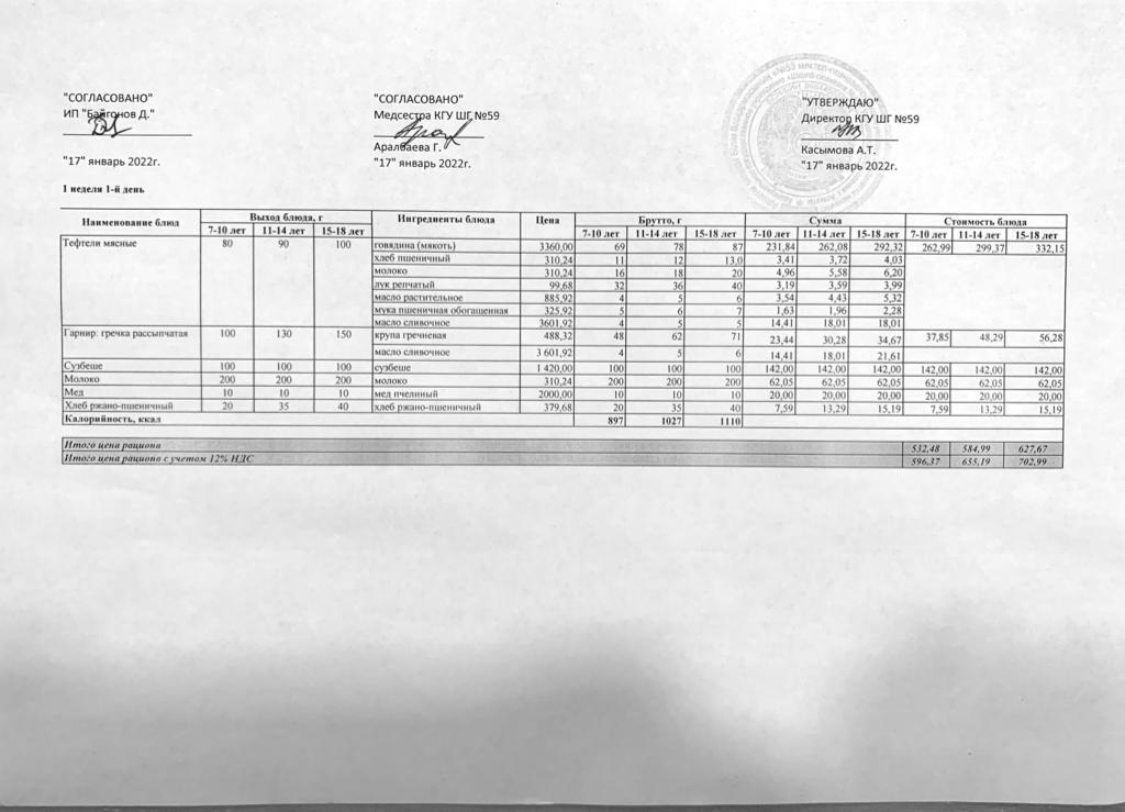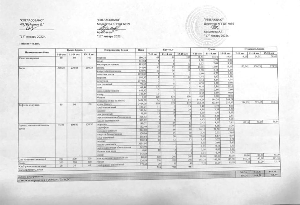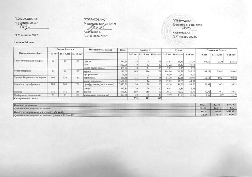 Меню Міндетті оқу қоры есебінен тегін тамақтанатын балаларға арналған апталық мәзірлер