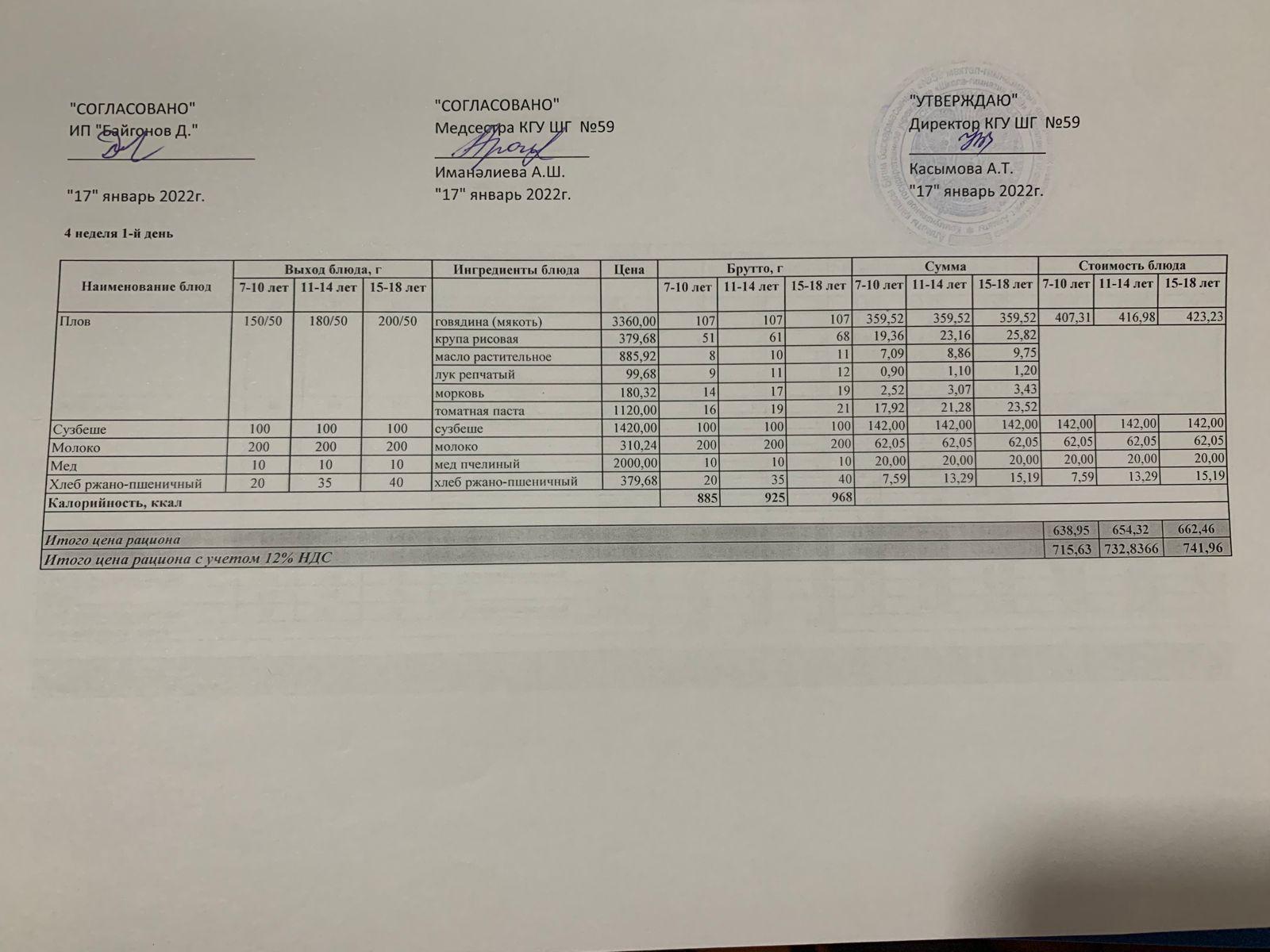 Тамақтандыруды ұйымдастыру бойынша жұмыс жоспары