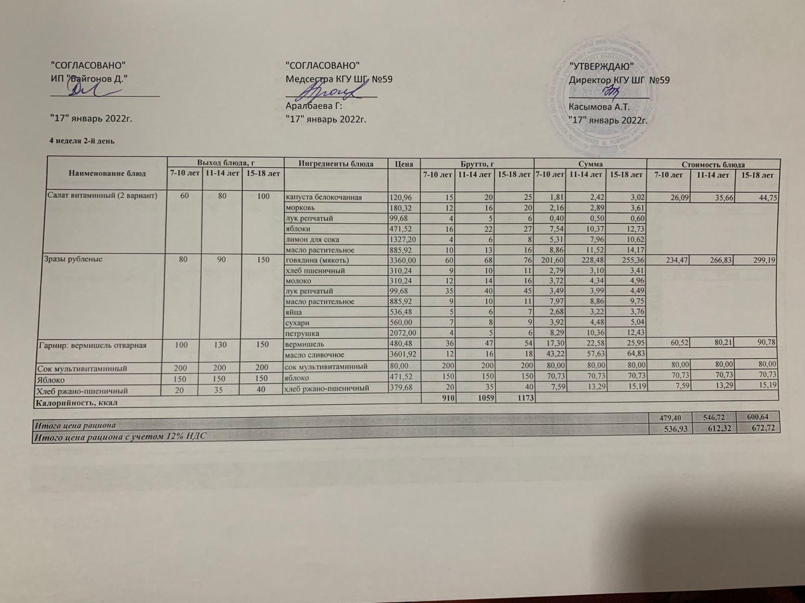 Тамақтандыруды ұйымдастыру бойынша жұмыс жоспары