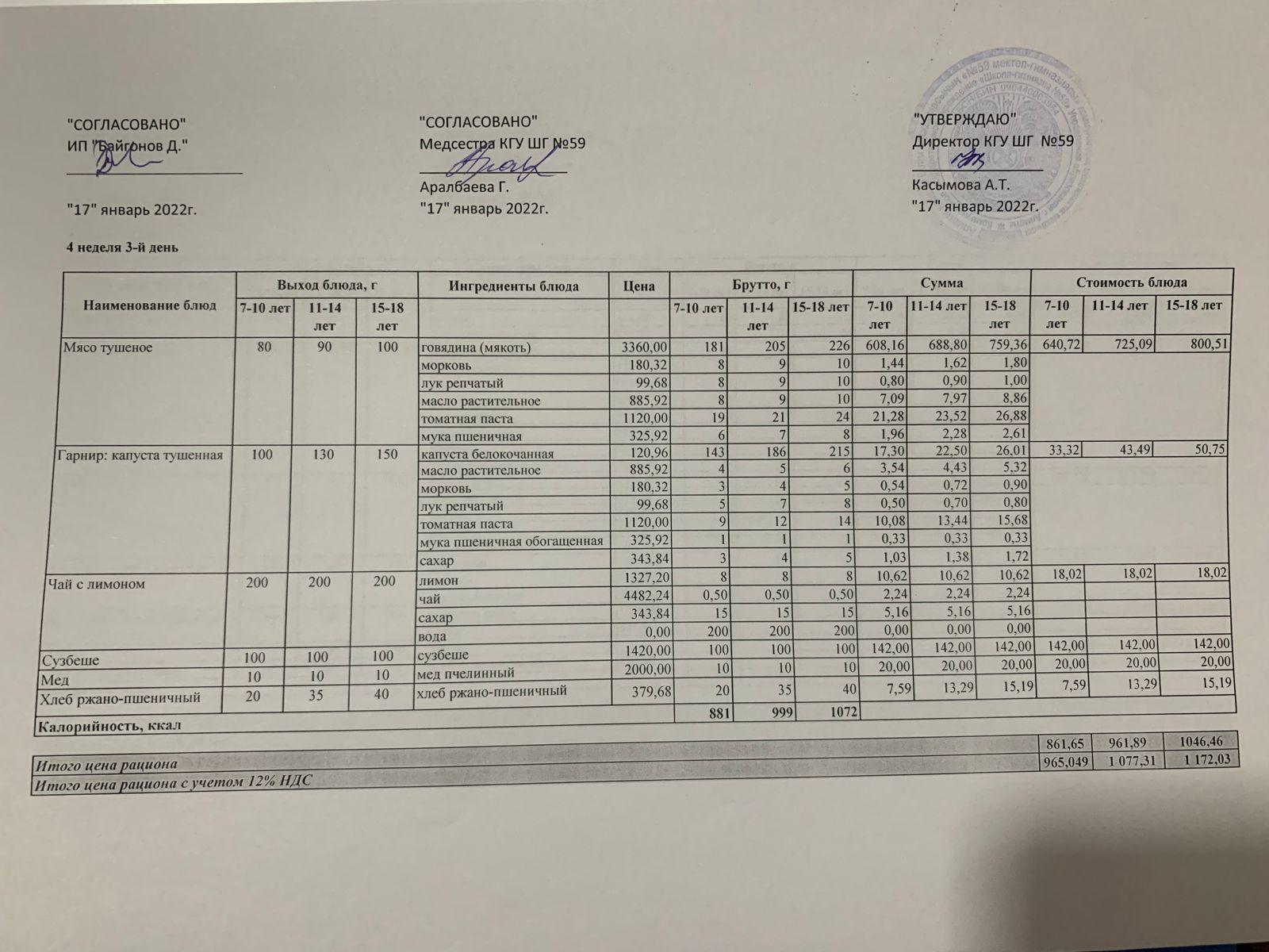 Тамақтандыруды ұйымдастыру бойынша жұмыс жоспары