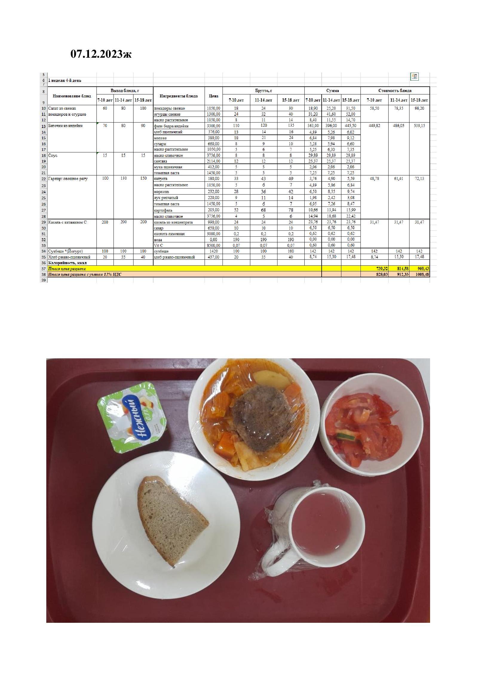 Тамақтандыруды ұйымдастыру бойынша жұмыс жоспары