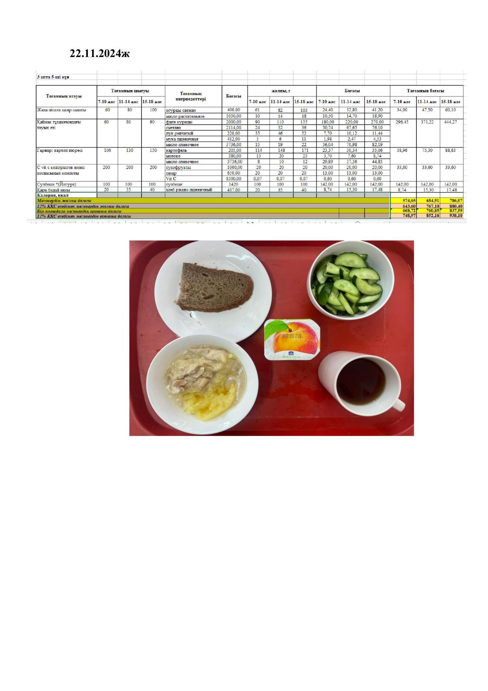Тамақтандыруды ұйымдастыру бойынша жұмыс жоспары