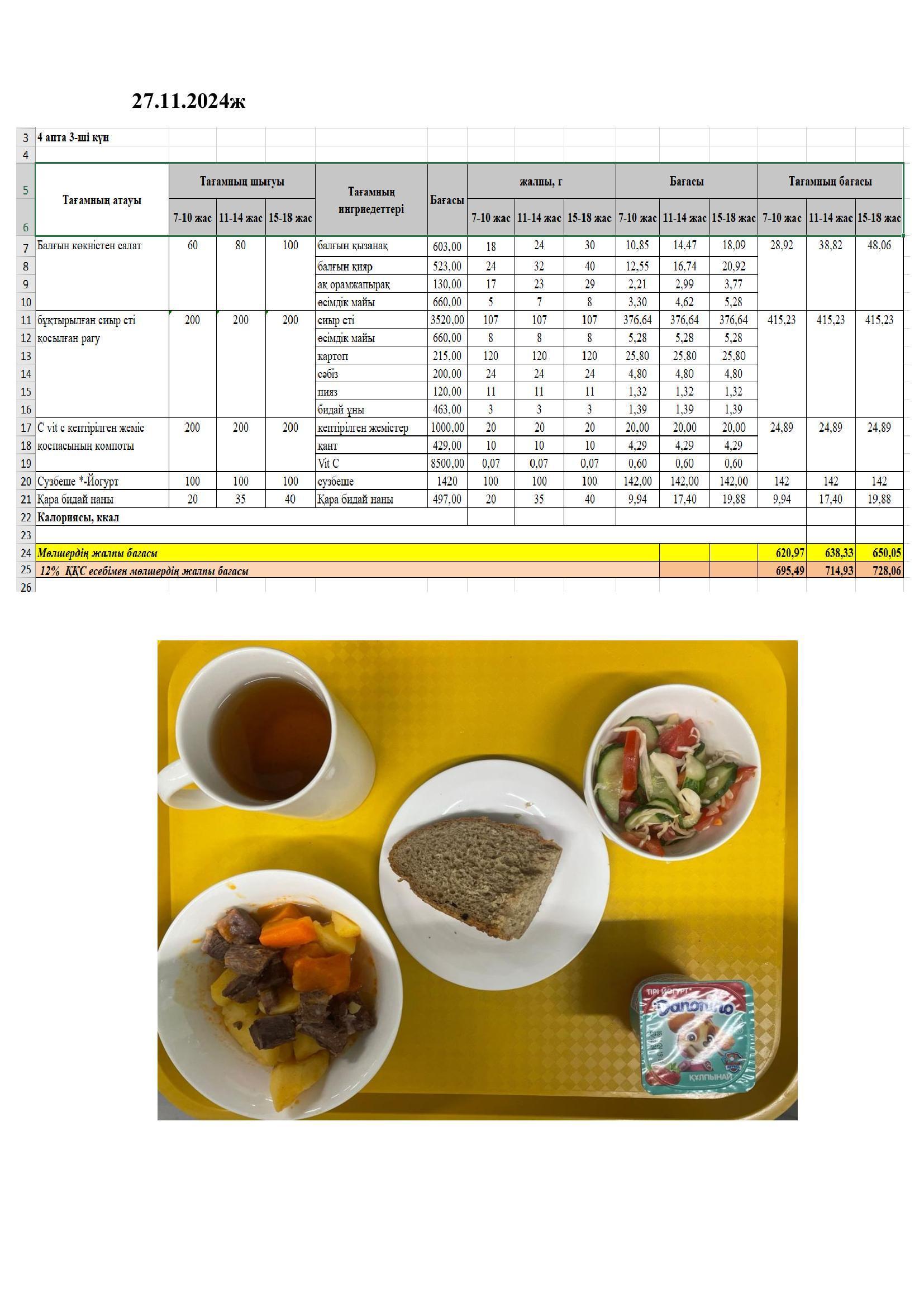 Тамақтандыруды ұйымдастыру бойынша жұмыс жоспары