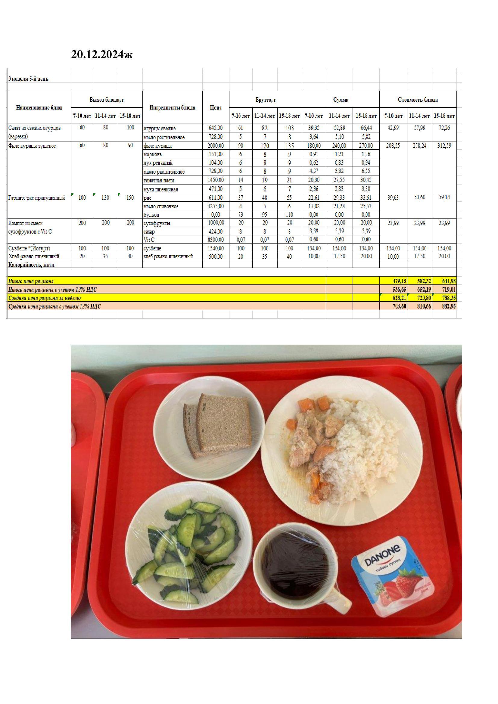 Тамақтандыруды ұйымдастыру бойынша жұмыс жоспары